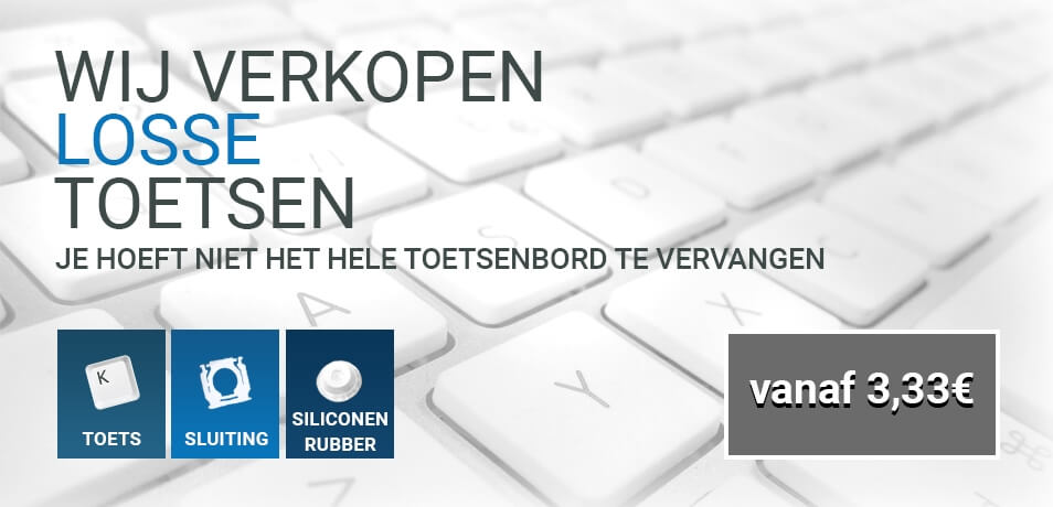 www.toetsenbordtoetsen.nl is een internetwinkel die losse toetsen verkoopt voor computer toetsenborden, montage onder toetsen, trackpoints en computercosmetica. In onze aanbieding vindt u laptoptoetsen, netbooktoetsen, palmtoptoetsen, tablettoetsen, computertoetsen, voor bedrade toetsenborden en toetsen voor draadloze toetsenborden. In geval de toetsen van uw computertoetsenbord kapot zijn, of als u de ontbrekende toetsen van het toetsenbord bezit – dan kunt u het probleem oplossen dankzij onze aanbieding.