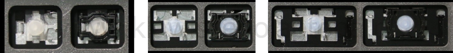 - Om het juiste model te kiezen, vergelijk de lege plek op jouw toetsenbord met de onderstaande foto’s, of verwijder de toets “A” – daaronder zit altijd een middelgrote clip.