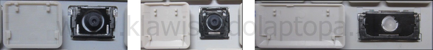 - Om het juiste model te kiezen, vergelijk de lege plek op jouw toetsenbord met de onderstaande foto’s, of verwijder de toets “A” – daaronder zit altijd een middelgrote clip.