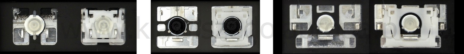- Bij de meeste toetsenborden die er van buiten identiek uitzien, werden verschillende soorten clips onder de toetsen gebruikt.