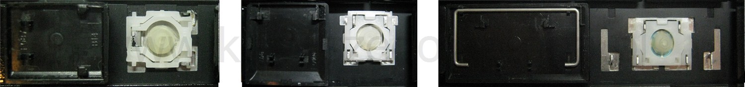 - Om het juiste model te kiezen, vergelijk de lege plek op jouw toetsenbord met de onderstaande foto’s, of verwijder de toets “A” – daaronder zit altijd een middelgrote clip.