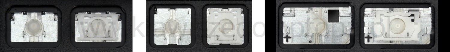 - Om het juiste model te kiezen, vergelijk de lege plek op jouw toetsenbord met de onderstaande foto’s, of verwijder de toets “A” – daaronder zit altijd een middelgrote clip.