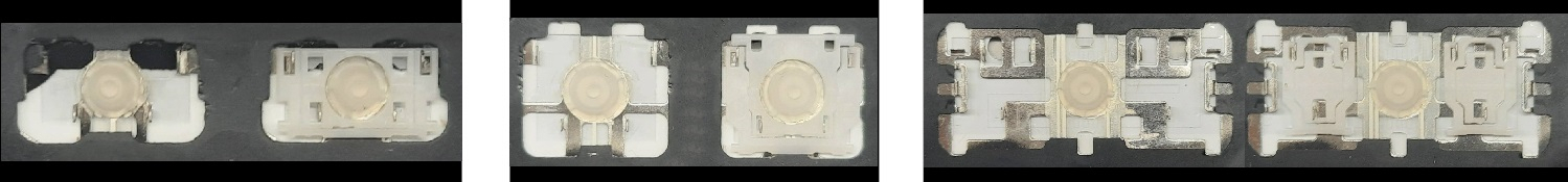 - Bij de meeste toetsenborden die er van buiten identiek uitzien, werden verschillende soorten clips onder de toetsen gebruikt.