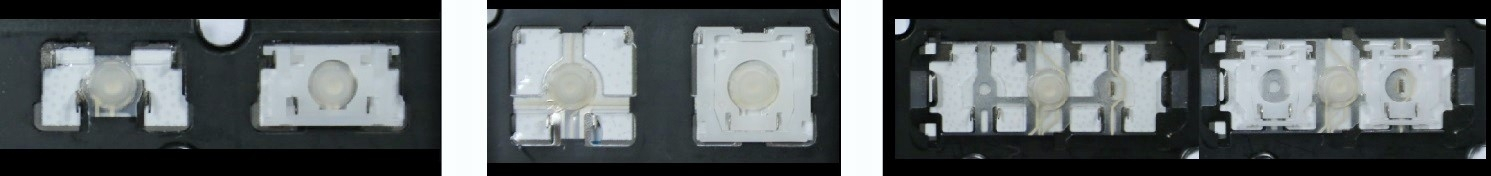 - Bij de meeste toetsenborden die er van buiten identiek uitzien, werden verschillende soorten clips onder de toetsen gebruikt.