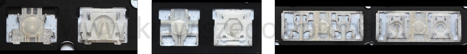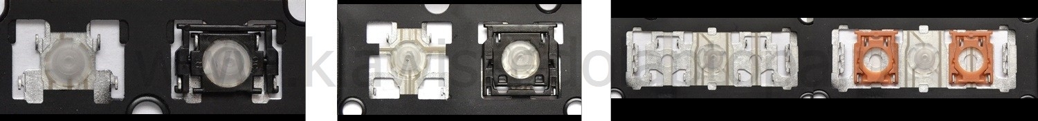 - Bij de meeste toetsenborden die er van buiten identiek uitzien, werden verschillende soorten clips onder de toetsen gebruikt.