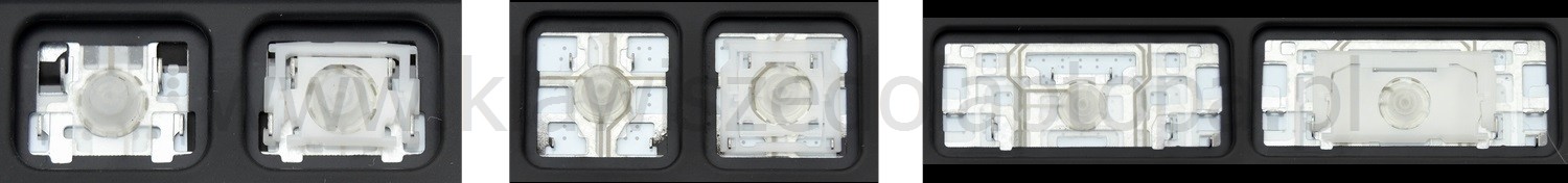 - Bij de meeste toetsenborden die er van buiten identiek uitzien, werden verschillende soorten clips onder de toetsen gebruikt.
