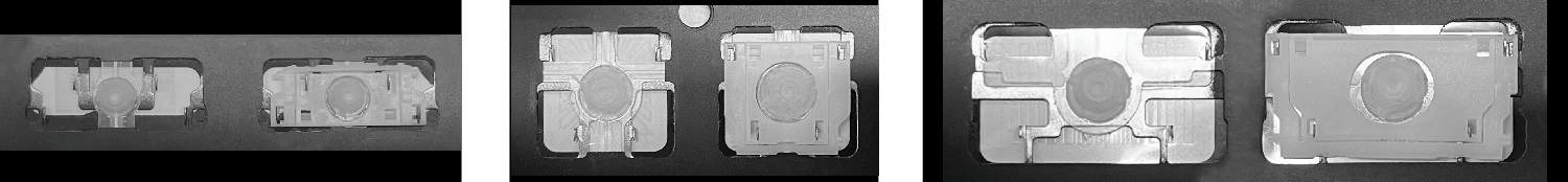- Om het juiste model te kiezen, vergelijk de lege plek op jouw toetsenbord met de onderstaande foto’s, of verwijder de toets “A” – daaronder zit altijd een middelgrote clip.