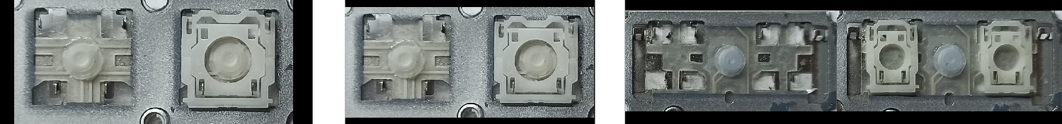 - Bij de meeste toetsenborden die er van buiten identiek uitzien, werden verschillende soorten clips onder de toetsen gebruikt.