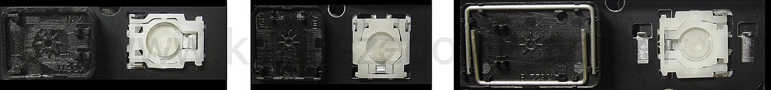 - Bij de meeste toetsenborden die er van buiten identiek uitzien, werden verschillende soorten clips onder de toetsen gebruikt.