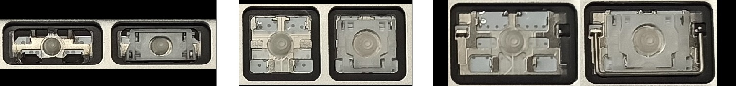 - Om het juiste model te kiezen, vergelijk de lege plek op jouw toetsenbord met de onderstaande foto’s, of verwijder de toets “A” – daaronder zit altijd een middelgrote clip.