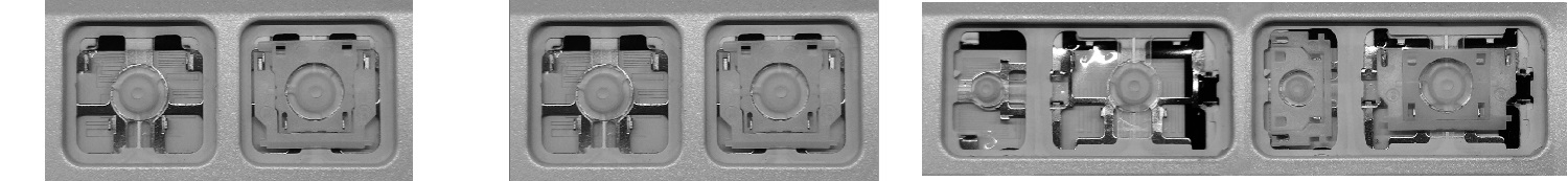 - Om het juiste model te kiezen, vergelijk de lege plek op jouw toetsenbord met de onderstaande foto’s, of verwijder de toets “A” – daaronder zit altijd een middelgrote clip.