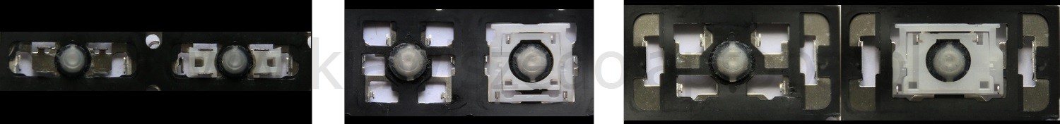 - Bij de meeste toetsenborden die er van buiten identiek uitzien, werden verschillende soorten clips onder de toetsen gebruikt.