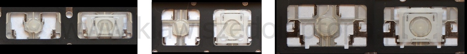 - Om het juiste model te kiezen, vergelijk de lege plek op jouw toetsenbord met de onderstaande foto’s, of verwijder de toets “A” – daaronder zit altijd een middelgrote clip.