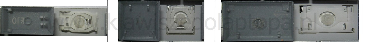 - Om het juiste model te kiezen, vergelijk de lege plek op jouw toetsenbord met de onderstaande foto’s, of verwijder de toets “A” – daaronder zit altijd een middelgrote clip.