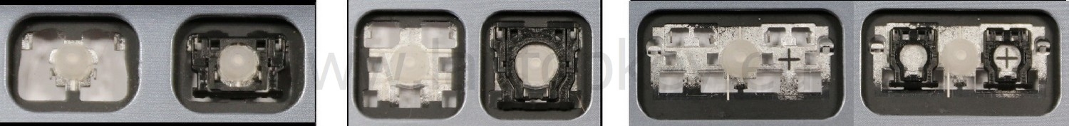 - Bij de meeste toetsenborden die er van buiten identiek uitzien, werden verschillende soorten clips onder de toetsen gebruikt.