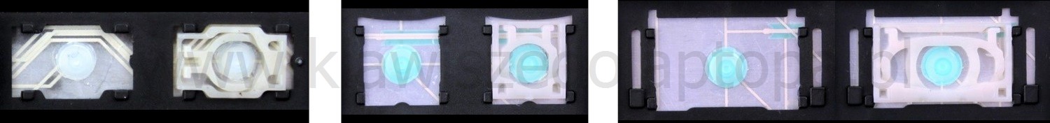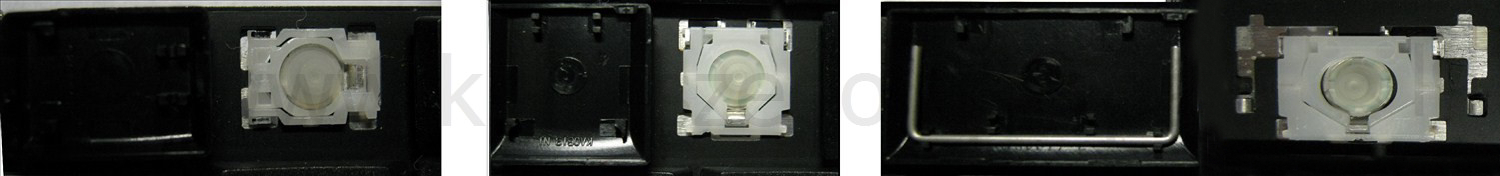 - Om het juiste model te kiezen, vergelijk de lege plek op jouw toetsenbord met de onderstaande foto’s, of verwijder de toets “A” – daaronder zit altijd een middelgrote clip.