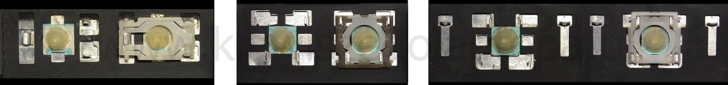 - Bij de meeste toetsenborden die er van buiten identiek uitzien, werden verschillende soorten clips onder de toetsen gebruikt.