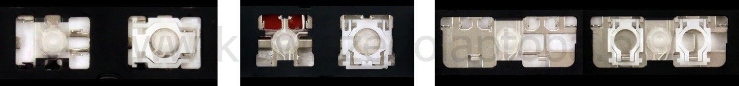 - Bij de meeste toetsenborden die er van buiten identiek uitzien, werden verschillende soorten clips onder de toetsen gebruikt.