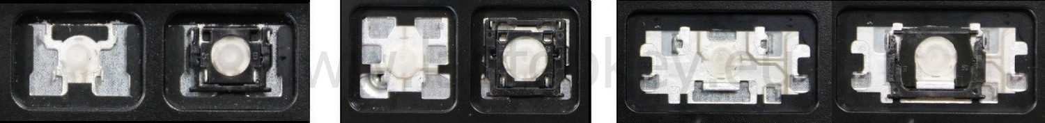 - Om het juiste model te kiezen, vergelijk de lege plek op jouw toetsenbord met de onderstaande foto’s, of verwijder de toets “A” – daaronder zit altijd een middelgrote clip.