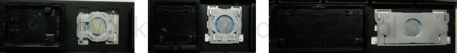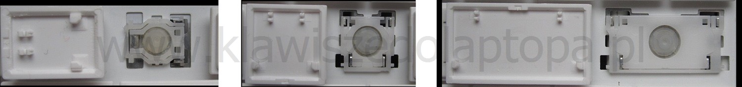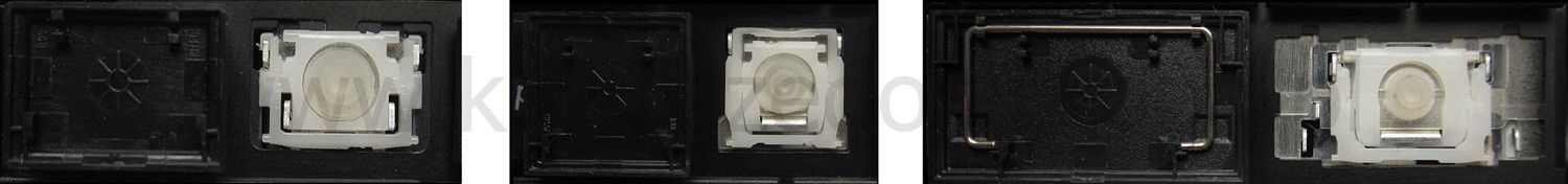 - Om het juiste model te kiezen, vergelijk de lege plek op jouw toetsenbord met de onderstaande foto’s, of verwijder de toets “A” – daaronder zit altijd een middelgrote clip.