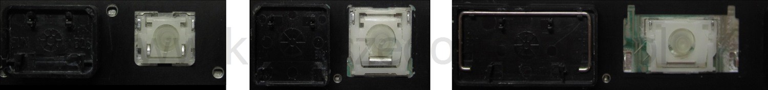 - Om het juiste model te kiezen, vergelijk de lege plek op jouw toetsenbord met de onderstaande foto’s, of verwijder de toets “A” – daaronder zit altijd een middelgrote clip.