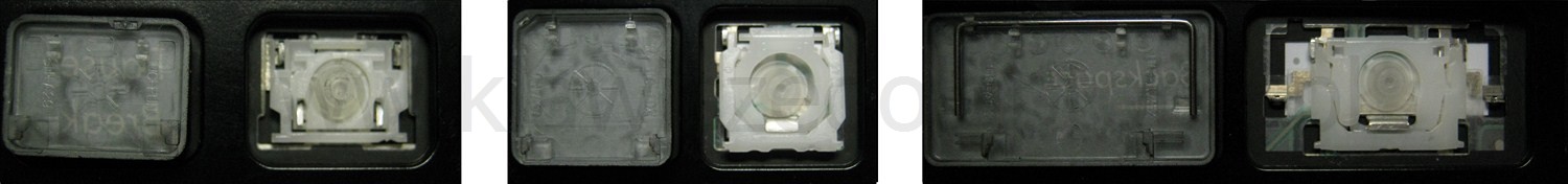 - Om het juiste model te kiezen, vergelijk de lege plek op jouw toetsenbord met de onderstaande foto’s, of verwijder de toets “A” – daaronder zit altijd een middelgrote clip.