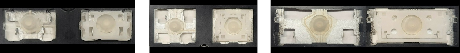 - Bij de meeste toetsenborden die er van buiten identiek uitzien, werden verschillende soorten clips onder de toetsen gebruikt.