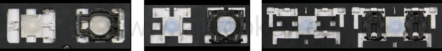 - Bij de meeste toetsenborden die er van buiten identiek uitzien, werden verschillende soorten clips onder de toetsen gebruikt.