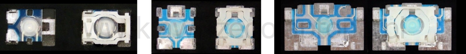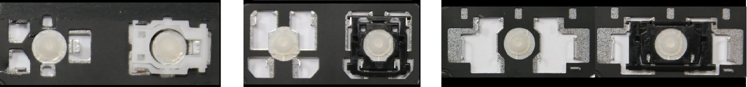 - Bij de meeste toetsenborden die er van buiten identiek uitzien, werden verschillende soorten clips onder de toetsen gebruikt.