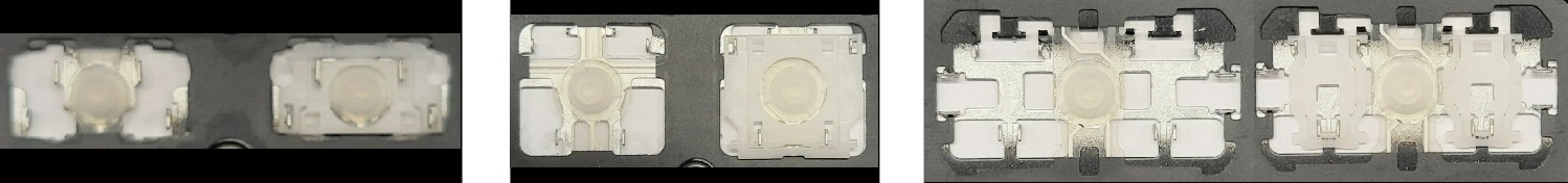 - Om het juiste model te kiezen, vergelijk de lege plek op jouw toetsenbord met de onderstaande foto’s, of verwijder de toets “A” – daaronder zit altijd een middelgrote clip.