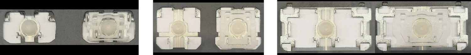 - Bij de meeste toetsenborden die er van buiten identiek uitzien, werden verschillende soorten clips onder de toetsen gebruikt.