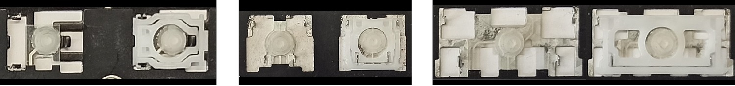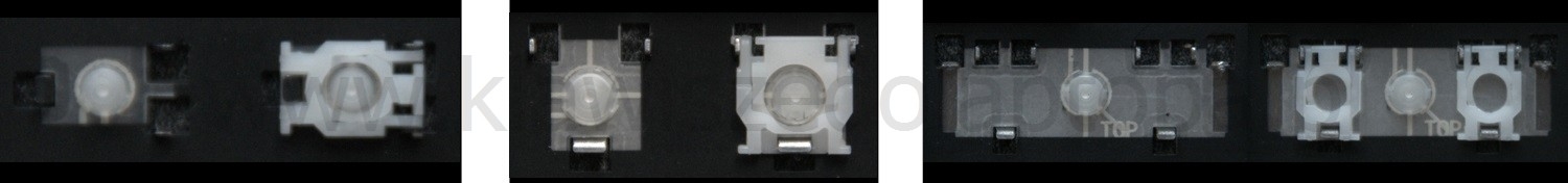 - Bij de meeste toetsenborden die er van buiten identiek uitzien, werden verschillende soorten clips onder de toetsen gebruikt.