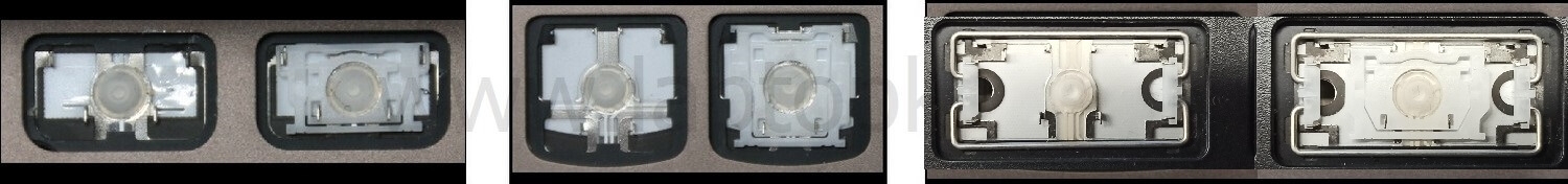 - Om het juiste model te kiezen, vergelijk de lege plek op jouw toetsenbord met de onderstaande foto’s, of verwijder de toets “A” – daaronder zit altijd een middelgrote clip.