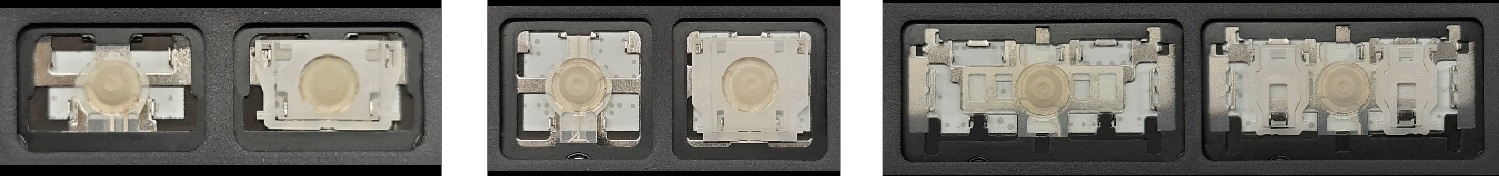 - Bij de meeste toetsenborden die er van buiten identiek uitzien, werden verschillende soorten clips onder de toetsen gebruikt.