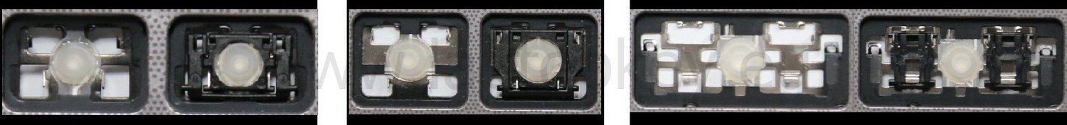 - Bij de meeste toetsenborden die er van buiten identiek uitzien, werden verschillende soorten clips onder de toetsen gebruikt.