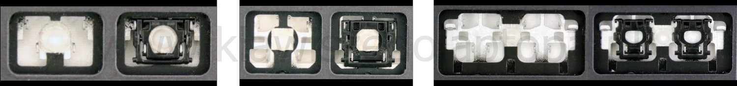 - Om het juiste model te kiezen, vergelijk de lege plek op jouw toetsenbord met de onderstaande foto’s, of verwijder de toets “A” – daaronder zit altijd een middelgrote clip.