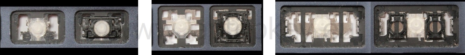 - Om het juiste model te kiezen, vergelijk de lege plek op jouw toetsenbord met de onderstaande foto’s, of verwijder de toets “A” – daaronder zit altijd een middelgrote clip.