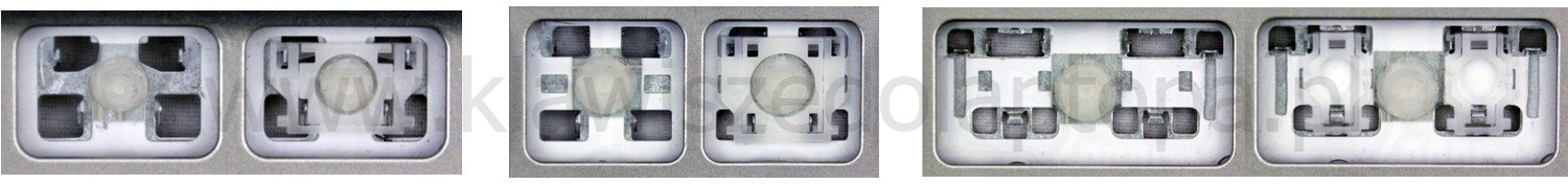 - Om het juiste model te kiezen, vergelijk de lege plek op jouw toetsenbord met de onderstaande foto’s, of verwijder de toets “A” – daaronder zit altijd een middelgrote clip.