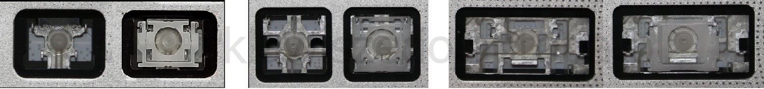- Bij de meeste toetsenborden die er van buiten identiek uitzien, werden verschillende soorten clips onder de toetsen gebruikt.