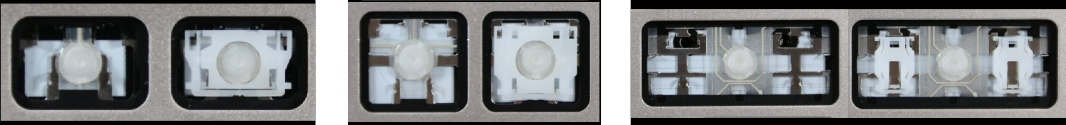 - Bij de meeste toetsenborden die er van buiten identiek uitzien, werden verschillende soorten clips onder de toetsen gebruikt.