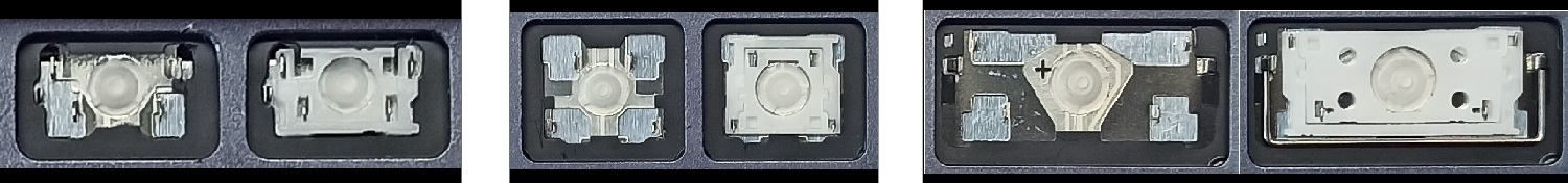 - Om het juiste model te kiezen, vergelijk de lege plek op jouw toetsenbord met de onderstaande foto’s, of verwijder de toets “A” – daaronder zit altijd een middelgrote clip.