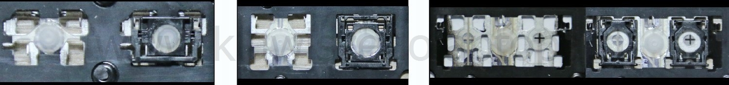 - Bij de meeste toetsenborden die er van buiten identiek uitzien, werden verschillende soorten clips onder de toetsen gebruikt.