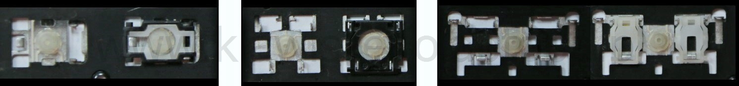 - Bij de meeste toetsenborden die er van buiten identiek uitzien, werden verschillende soorten clips onder de toetsen gebruikt.