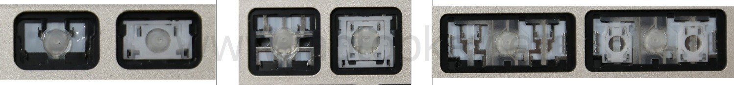 - Om het juiste model te kiezen, vergelijk de lege plek op jouw toetsenbord met de onderstaande foto’s, of verwijder de toets “A” – daaronder zit altijd een middelgrote clip.