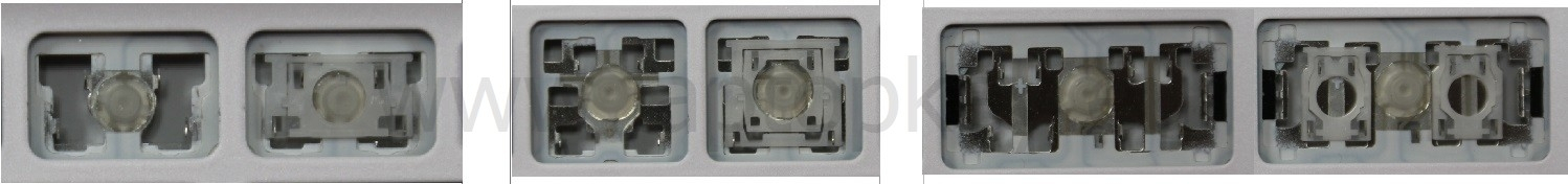- Bij de meeste toetsenborden die er van buiten identiek uitzien, werden verschillende soorten clips onder de toetsen gebruikt.