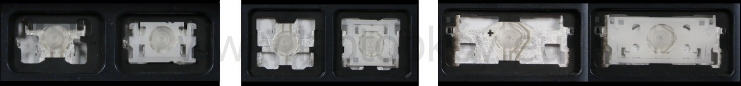 - Bij de meeste toetsenborden die er van buiten identiek uitzien, werden verschillende soorten clips onder de toetsen gebruikt.