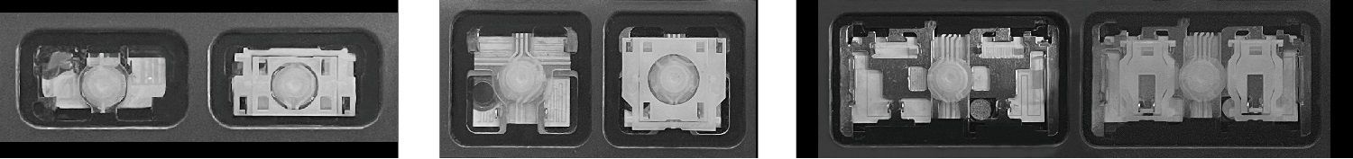 - Bij de meeste toetsenborden die er van buiten identiek uitzien, werden verschillende soorten clips onder de toetsen gebruikt.