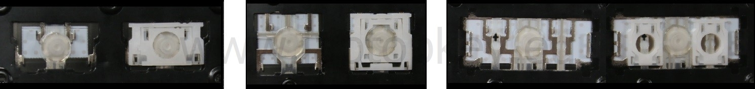 - Bij de meeste toetsenborden die er van buiten identiek uitzien, werden verschillende soorten clips onder de toetsen gebruikt.