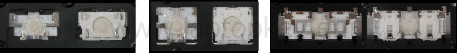 - Om het juiste model te kiezen, vergelijk de lege plek op jouw toetsenbord met de onderstaande foto’s, of verwijder de toets “A” – daaronder zit altijd een middelgrote clip.