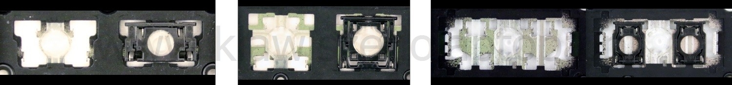 - Bij de meeste toetsenborden die er van buiten identiek uitzien, werden verschillende soorten clips onder de toetsen gebruikt.